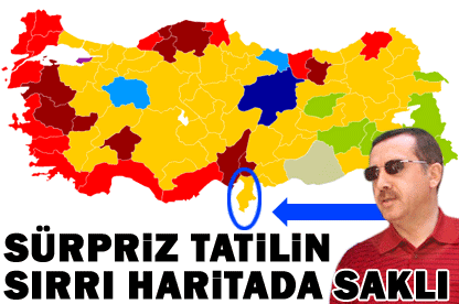 Başbakan Recep Tayyip Erdoğan, yerel seçimlerin ardından tatilini geçirmek üzere eşi Emine Erdoğan ile birlikte Hatay’a gitti. Erdoğan, daha önce tatilleri için Balıkesir’in Ekinlik Adası’nı ya da Antalya’yı tercih ediyordu. Ama bu kez tatil için seçtiği yer farklı oldu. Hatay, AKP’nin Ege ve Akdeniz kıyılarında kazandığı tek belediye olma özelliğini taşıyor.29 Mart yerel seçimlerinde Başbakan Erdoğan’ın ‘kesin alırız’ gözüyle baktığı Antalya’yı CHP, Balıkesir’i ise MHP kazandı. Son iki ayda Türkiye’nin hemen hemen her yerinden miting yapan ve yerel seçimlerin ardından ABD Başkanı Barack Obama’yı ağırlayan Başbakan Recep Tayyip Erdoğan, İstanbul’da partisinin İl Başkanlığı’nda düzenlediği toplantıdan sonra tatile çıkacağı belirtildi. Nereye gideceği bir süre gizlenen Erdoğan, uçakla saat 00.30 sıralarında Hatay Havaalanı’na geldi.