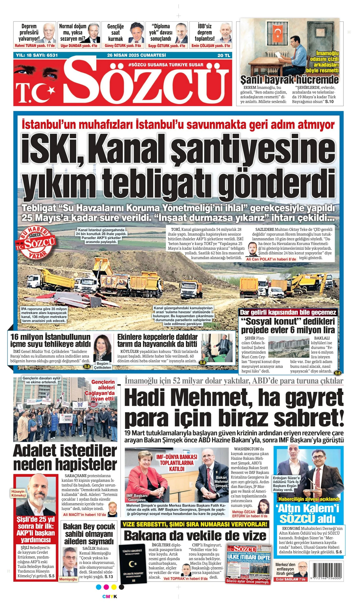 Çelik, “Bugün yapılan operasyon bir tesadüf değildir. İSKİ, Kanal İstanbul hattındaki Sazlıdere Barajı havzasına dikilen TOKİ konutları için dün kaçak yapı ve yıkım kararı verdi. Operasyon geldi.” dedi. İSKİ’nin yıkım tebligatı göndermesini SÖZCÜ bugün okurlarına manşetten duyurmuştu.