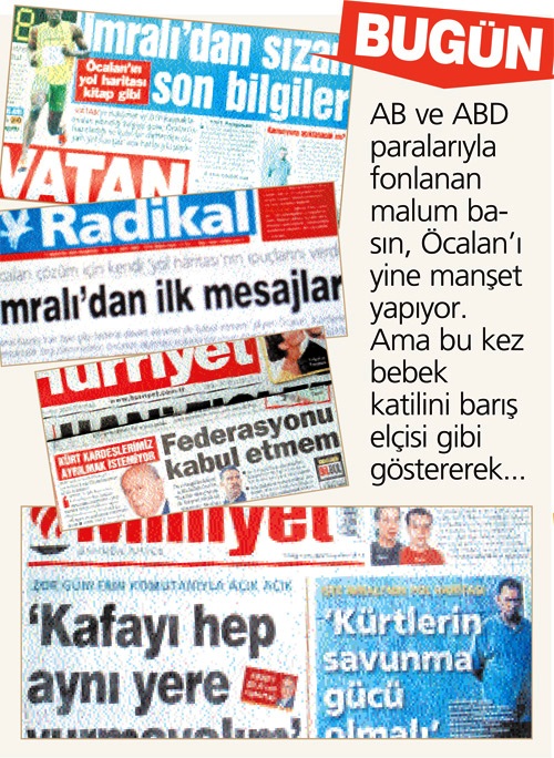 DÜNÜ unutturacaklarını sanan hainler, Türkiye’de 25 yıldır, çoğu kadın ve çocuk 40 bin kişinin kanını döken çetebaşı Abdullah Öcalan için “demokratik lider” pazarlaması yapıyor.