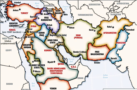 2006 yılında ABD Silahlı Kuvvetler dergisinde yayınlanan bu harita ABD’nin Büyük Ortadoğu Projesi’nin hedeflerini ortaya koyuyor. Haritada da görüldüğü gibi BOP’da Türkiye’nin bir bölümünü de içine alan Büyük Kürdistan kurulması hedefleniyor.