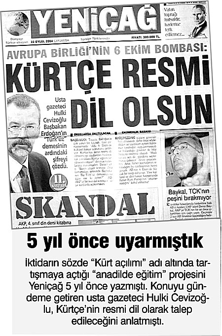 AÇILIM adı altında terörle müzakere planı yürüten iktidar, Kürtçe’yi okullara taşıyacak. Başbakan Yardımcısı ve Devlet Bakanı Hayati Yazıcı, “Evde Kürtçe konuşuyorsa, evinin bitişiğindeki eğitim kurumunda konuşabilir” diye konuştu.