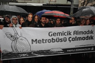 Zammı protesto etmek için turnikelerden atlayan metrobüs eylemcileri hakkında, karşılıksız hak gaspına sebebiyet verdikleri gerekçesi ile savcılık soruşturması başlatıldığını belirten bir grup öğrenci, yaptıkları açıklamada, Bilal Erdoğan maskeleri kullanıp, “Gemicik almadık, metrobüsü çalmadık” pankartı açtı.