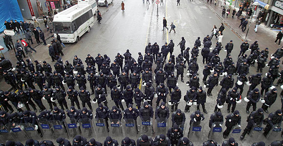 – İstanbul’da çeşitli noktalarda toplanan sendikalar Saraçhane’da buluştu. Sendikaların toplanma noktalarından biri olan Sirkeci’deki Ticaret Üniversitesi’nin önünden hareket eden işçi ve memurlardan yaklaşık 50’si Unkapanı’ndaki TEKEL binası önüne geldiğinde yolu Taksim yönüne trafiğe kapatmak istedi.