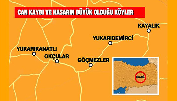 ABD Coğrafi Araştırmalar Ajansı USGS’e göre ise Elazığ’daki depremin büyüklüğü 5.9. Merkez üssü ise Mirahmet ve Durmuşköy arasındaki tarım arazisi.