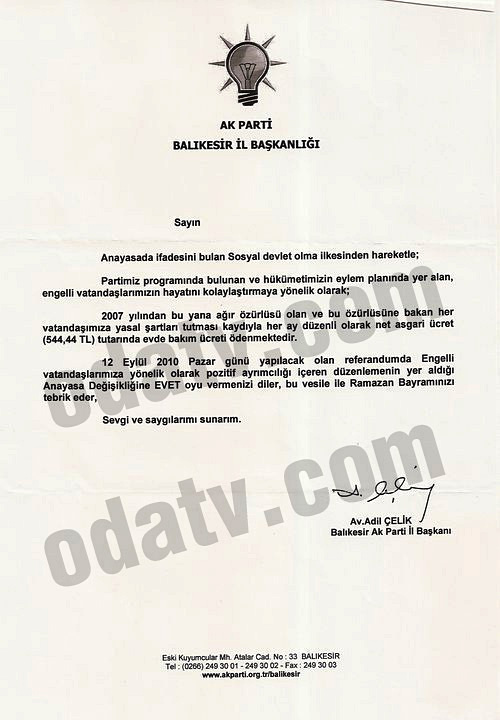 Haberimizin konusu; AKP Balıkesir İl Teşkilatı’nın, ildeki engelli vatandaşların adreslerine gönderdiği bir mektup.