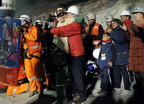Kurtarılan madencileri Devlet Başkanı Pinera ve Madencilik Bakanı Golborne’un yanı sıra yaklaşık 800 madenci yakını ve 2 binden fazla gazeteci karşılıyor.