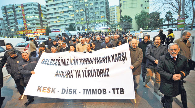 Kamuoyunda 'torba yasa' olarak bilinen düzenlemeye DİSK ve KESK başta olmak üzere bazı sendikalarla bir kısım meslek örgütleri muhalefet ediyor. Bu amaçla düzenlenen protesto gösterilerinde eylemciler polisle çatışmıştı. fotoğraf: aa, KENAN ÇİMEN