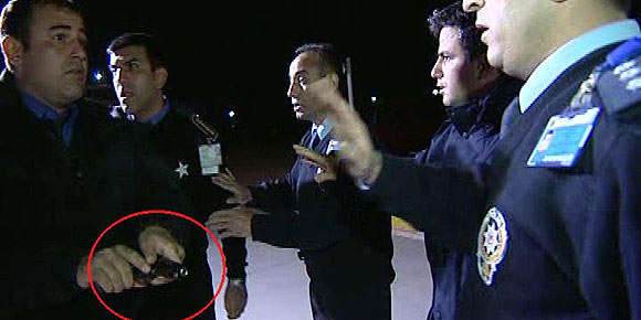 Olup bitenleri cep telefonuyla görüntüleyen Yüksel Evsen otoparka sokulmayınca tartışma alevlendi. İddiaya göre Evsen, özel güvenlik görevlilerinin önce sözlü, ardından fiili saldırısına uğradı. Bu arada havaalanına gelen aynı televizyonun kameramanı da olayı görüntüledi.
