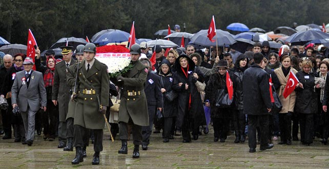 ANKARA – Atatürkçü Düşünce Derneği (ADD) ve Türkiye Emekli Subaylar Derneği (TESUD) üyelerinden oluşan, aralarında tutuklu subay eşlerinin de bulunduğu 15 bin kişilik bir kalabalık, ‘Balyoz Planı’ davası kapsamında gerçekleştirilen tutuklamaları Atatürk’e şikayet etmek amacıyla Anıtkabir’de buluştu.