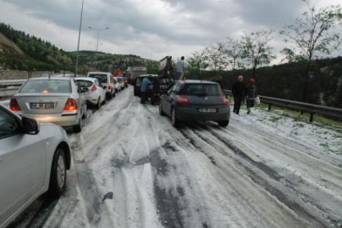 Öte yandan, Konya-Ankara karayolunun Kepekli mevkisinde etkili olan dolu yağışı nedeniyle ulaşıma kapanan karayolunda çok sayıda araç yolda mahsur kaldı. Karayolunda yaklaşık bir saattir ulaşım sağlanamazken, kilometrelerce uzunlukta araç kuyruğu oluştu. Dolu kalınlığının karayolunda yaklaşık 10 santimetreye ulaştığı görüldü.
