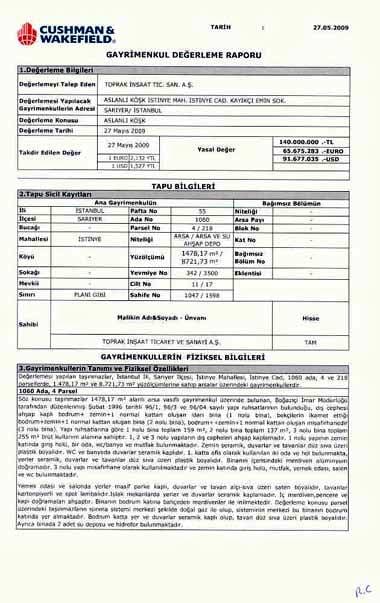 “İlişikte Toprak Holding Hukuk Grubu Başkanlığı?nın Tasarruf Mevduatı Sigorta Fonu?nun (TMSF) satışlarıyla ilgili basın açıklamasını ve 58 Ülke?de faaliyette olup, Türkiye Cumhuriyeti Başbakanlık Özelleştirme İdaresi?de dahil birçok kuruluşa değerleme hizmeti veren Dünya?nın en büyük ticari gayrimenkul hizmetleri firması Cushman & Wakefield?in İstinye Aslanlı Köşk için yapmış olduğu 140 Milyon TL?lik değerleme raporunu görebilirsiniz. Hatırlanacağı üzere TMSF İstinye Aslanlı Köşk?ü TMSF Başkanı Ahmet Ertürk?ün yakın dostu iş adamı Remzi GÜR? e 23,8 Milyon TL?ye hediye etmiş, Toprak Grubu TMSF?nin bu satışları için yargıya gitmişti.