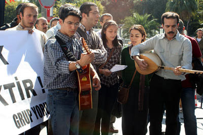 İstanbul Emniyet Müdürlüğü önünde toplanan aralarında Grup Yorum üyelerinin de bulunduğu 30 kişilik grup, Grup Yorum’un üyesi Fatma Doğan’a muhbirlik teklifi yapıldığını iddia ederek polisi protesto etti.