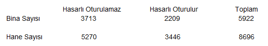 Van’da meydana gelen deprem sonrasında Başbakanlık Afet ve Acil Durum Yönetimi Başkanlığı (AFAD) tarafından görevlendirilen teknik ekip bölgede dün başlayan başlanan ön hasar tespit çalışmalarına devam ediyor. Yapılan hasar tespit çalışmalarında, Van İli Merkez İlçesi, köyleri ve Erciş İlçesi merkez mahallelerinde bugün saat 10.00 itibari ile toplam 7069 bina incelendi.