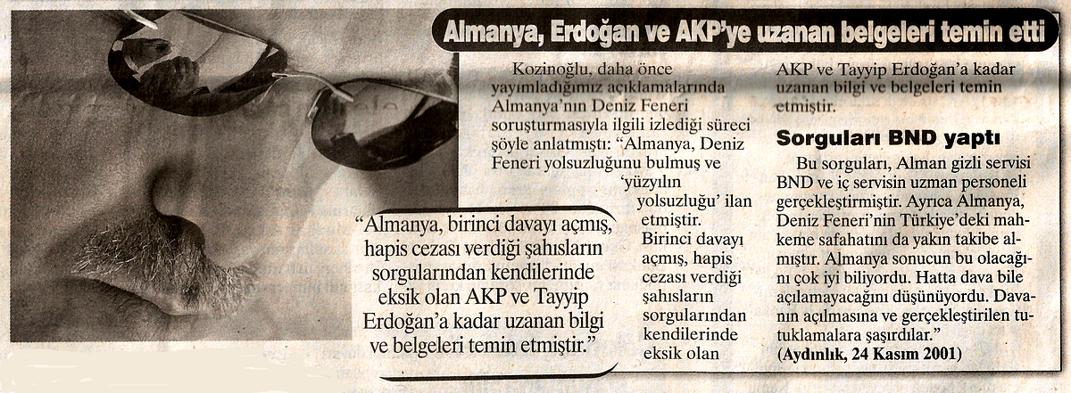 ” Almanya çok yakında Recep Tayyip Enrdoğan’ın 8 banka hesabını ( İsviçre bankalarındaki ) yayınlayacaktır/yayınlamaya hazırlanmaktadır.Almanya ayrıca RTE ( Recep Tayyip Erdoğan )’ın diğer ülkelerdeki gizli hesaplarını bulmuştur/tespit etmiştir.Almanya,Deniz Feneri’nin ikinci davasını açıp elindeki mevcut bilgiler doğrultusunda başta Recep Tayyip Erdoğan ile Z. ( Zahid ) Akman’ı ve diğerlerini Alman mahkemelerinde ifade vermeye çağırmaya,gitmedikleri takdirde de haklarında kırmızı bülten çıkarmaya hazırlanmaktadır.”