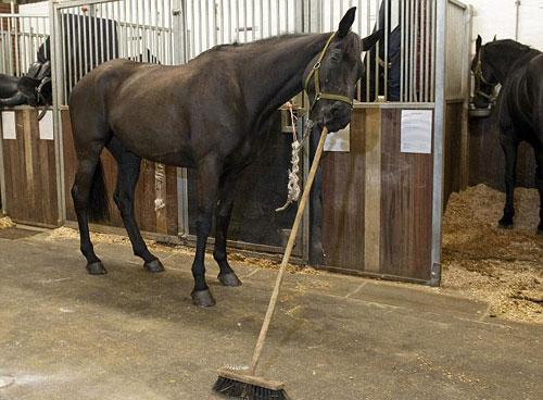 İngiltere’de askeri bir kışladaki atın mahareti görenleri şaşkına çeviriyor. Llamrei adlı at kendi ahırını kendi temizliyor.
