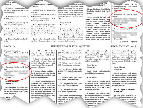 Rotahaber‘in haberine göre Hidro Elektrik sanntrali kurmak için 2007 yılında kurulan Çarşamba Elektrik Üretim A.Ş’nin ortaklık yapısı da oldukça çarpıcı. Şirketin Türkiye Ticaret Sicili Gazetesinde yeralan kurucu listesinde Kurucular arasında Metro Turizmin sahibi Galip Öztürk ve Bakan Suat Kılıç’ın yanısıra, AKP Samsun eski Milletvekili Fatih Öztürk, Çarşamba’nın AKP’li Belediye Başkanı Hüseyin Dündar da bulunuyor.