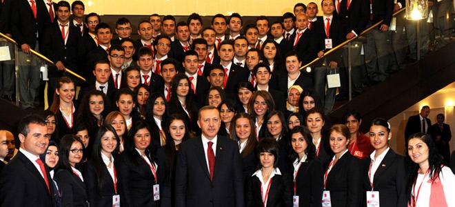 ”Biz, mirası, emaneti devralacak gençleri düşünerek, eğitime, spora, kültüre Cumhuriyet tarihimizin en büyük yatırımlarını yaptık” diyen Erdoğan, ”İnşallah yarın bu koltuklarda sizler oturacaksınız. Yarın ülkenin kaderini sizler tayin edeceksiniz. Siyasete olduğu kadar, bilime, sanata, spora, ekonomiye, dış politikaya inşallah sizler yön vereceksiniz. Sizler ne kadar iyi yetişir, kendinizi ne kadar iyi yetiştirirseniz biz inanıyoruz ki Türkiye de o kadar iyi olacak, o kadar büyüyecektir” şeklinde konuştu.
