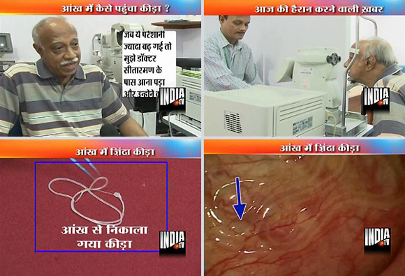 Krishnamurthy’i muayene eden Dr. V. Seetharaman, hastanın göz kapağının içerisindeki zarda 13 santimetrelik bir solucanın hareket ettiğini gördü ve ameliyat için kolları sıvadı.