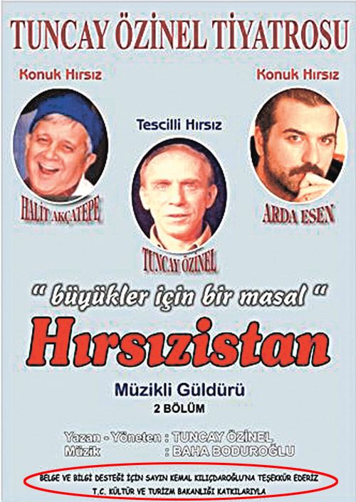 Milliyet’in haberine göre; Tuncay Özinel Tiyatrosu’nun hırsızların yaşadığı Hırsızistan adlı bir ülkeyi anlattığı “Büyükler için Masal, Hırsızistan” adlı oyununun Keşan Kültür Merkezi’nde bugün gerçekleştirilecek olan temsili, kaymakam engeline takıldı.