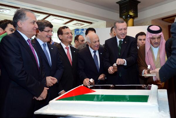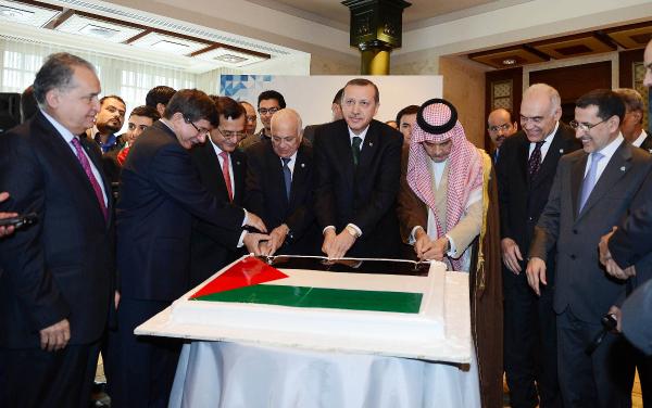 Başbakan Erdoğan, Türk-Arap İşbirliği Forumu’ndaki konuşmasının ardından Türkiye’de öğrenim gören Filistinli öğrencilerin, Filistin’in BM’de üye olmayan gözlemci devlet statüsü kazanması münasebetiyle hazırladığı Filistin bayrağı şeklindeki pastayı kesti. Erdoğan, kestiği pastadan kendisine eşlik eden devlet adamlarına ikram etti.