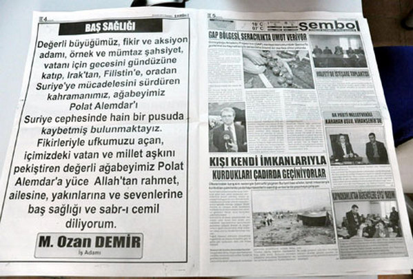 Şanlıurfa’da bir işadamı, takipçisi olduğu Kurtlar Vadisi dizisinin baş karakteri olan ve önceki bölümde Suriye’de öldürüldü gibi gösterilen ‘Polat Alemdar’ için yerel bir gazeteye tam sayfa başsağlığı ilanı verdi.