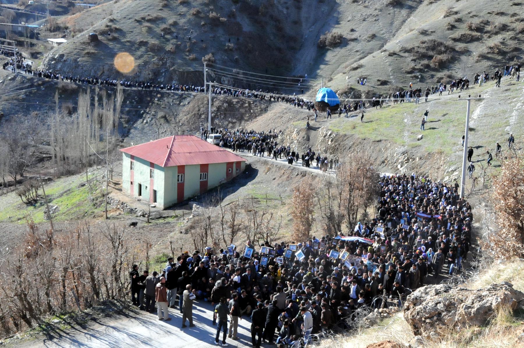 Yapılan konuşmaların ardından, üstü brandayla kapatılan halı sahada, yaşamını yitiren 34 kişi için mevlit okutulduktan sonra cuma namazı kılındı. Namazın ardından anmaya katılanlar kortej halinde 34 kişinin mezarını ziyaret için yürüyüşe geçti. Yürüyüşün önünde bir grup PKK flamaları taşıyıp, Abdullah Öcalan lehine slogan attı.