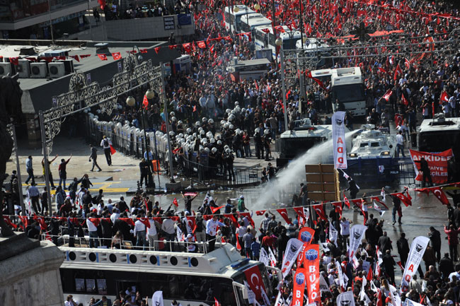 3 PKK’lının cenazesi Diyarbakır’da gövde gösterisine dönüştü. Polis ortalıkta gözükmedi. Polisin görevini BDP’liler yaptı. Bu görüntüler 29 Ekim’de AKP’nin emriyle polisin Türk bayraklarıyla Ata’sına koşanlara yaptığı saldırıyı hatırlattı.