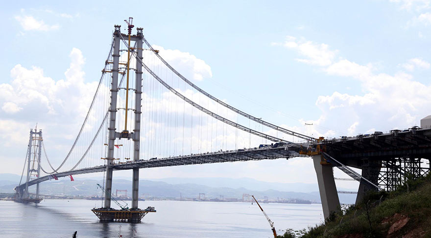 İstanbul ile İzmir arasında 8-10 saat süren ulaşım 3,5 saate, İstanbul ile Bursa arasında 2,5-3 saat süren ulaşımı 1 saate indirecek Gebze-Orhangazi-İzmir Otoyolu Projesi’nin en büyük ayağını oluşturan 2 bin 682 metre uzunluğundaki İzmit Körfez Geçişi Köprüsü bin 550 metre orta açıklığı ile dünyanın en büyük orta açıklığa sahip 4′üncü köprüsü oldu. 7 Ocak tarihinde tabliyelerin montajına başlanırken, 35 metre 93 santim genişliğindeki 113 tabliyenin montajı sağlandı. Köprü, Kocaeli ve Yalova istikametlerine doğru 3′er şeritten oluşurken, bir de hizmet şeridi bulunacak. Asfalt çalışmalarının tamamlanmasının ardından köprü Mayıs ayı sonunda ulaşıma açılacak. İzmit Körfez Geçişi Köprüsü ulaşıma açıldığında İzmit Körfezi’nin etrafını dolaşarak yapılan yaklaşık 2 saat süren yolculuk ile feribotla yaklaşık 1 saat süren geçiş süresi bağlantı yolları ve köprü ile 12 kilometreyi bulan körfez geçişi 6 dakikaya inecek. Köprüden geçiş ücreti ise 35 dolar artı KDV olacak.