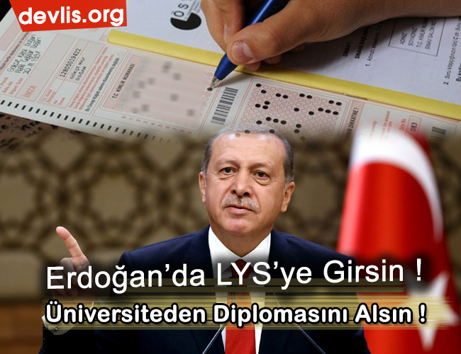 Devrimci Liseliler yayımladıkları açıklamayla üniversite diplomasının gerçekliği kanıtlanamayan Erdoğan’ın LYS’ye girmesini ve üniversite okumasını istedi…