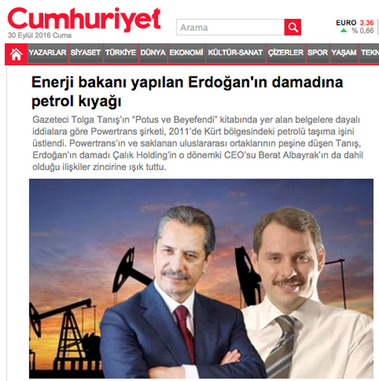 Tanış’ın kitabında yer alan bilgiler ışığında Cumhuriyet gazetesinde de 12 Mart 2015 tarihinde, ‘Enerji bakanı yapılan Erdoğan’ın damadına petrol kıyağı’ başlıklı bir haber yayınlandı.