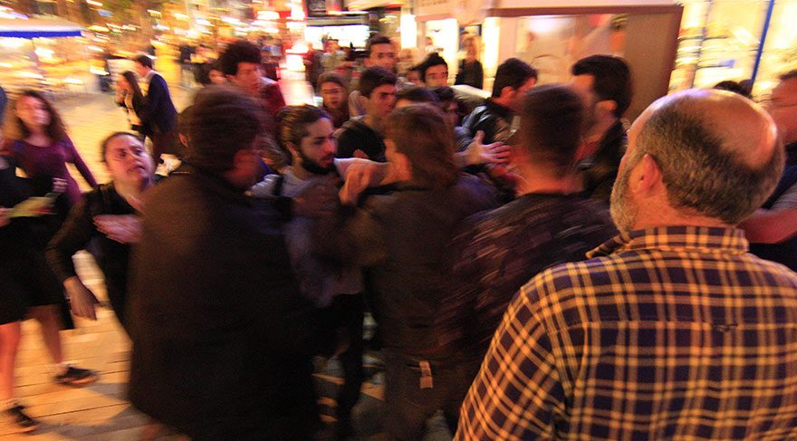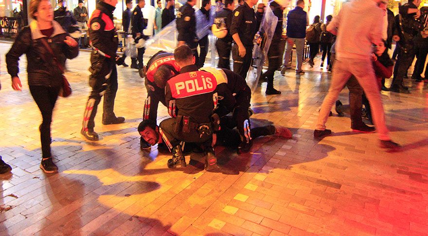 Polis amirleri, gruptakilere dağılmaları konusunda yeniden uyarıda bulununca çıkan tartışmaların ardından arbede yaşandı. Daha sonra çevik kuvvet ekipleri gruba biber gazıyla müdahale etti. Bazı göstericiler ara sokaklara kaçarak dağılırken, polis, gruptan 14 kişiyi gözaltına aldı. Polis araçlarına bindirilen eylemciler, emniyet müdürlüğüne götürüldü.