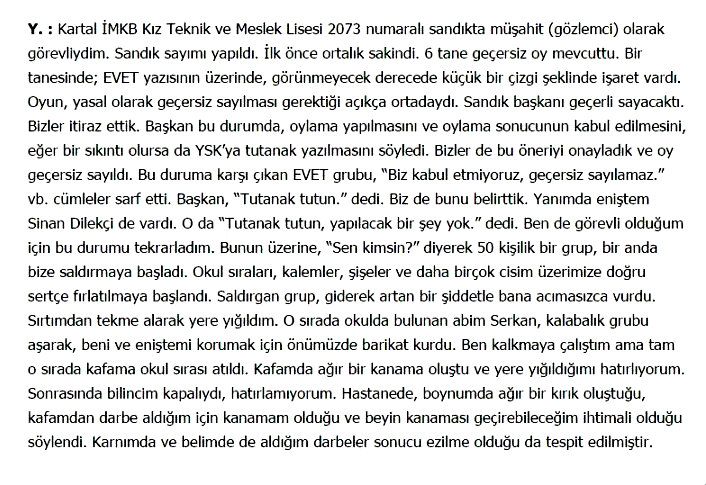 Türkiye 16 Nisan’da referandum için sandık başına gitti. Sandık ihlallerinin yaşandığı 16 Nisan günü İstanbul Kartal’da İMKB Mesleki ve Teknik Anadolu Lisesi’nden sandık görevlisi bir kadın hatalı “Evet” oyuna itiraz ettiği için AKP’liler tarafından linç edildiğini iddia etmişti. O iddialara ilişkin görüntüler de ortaya çıktı.