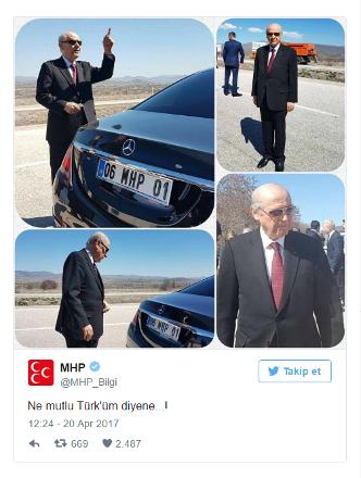 MHP’nin resmi Twitter hesabından paylaşılan Devlet Bahçeli fotoğafları sosyal medyada gündem oldu. Bahçeli’nin güneş gözlüğü taktığı fotoğraflar ‘Ne mutlu Türküm diyene’ mesajıyla paylaşıldı. Paylaşıma yüzlerce yorum geldi.