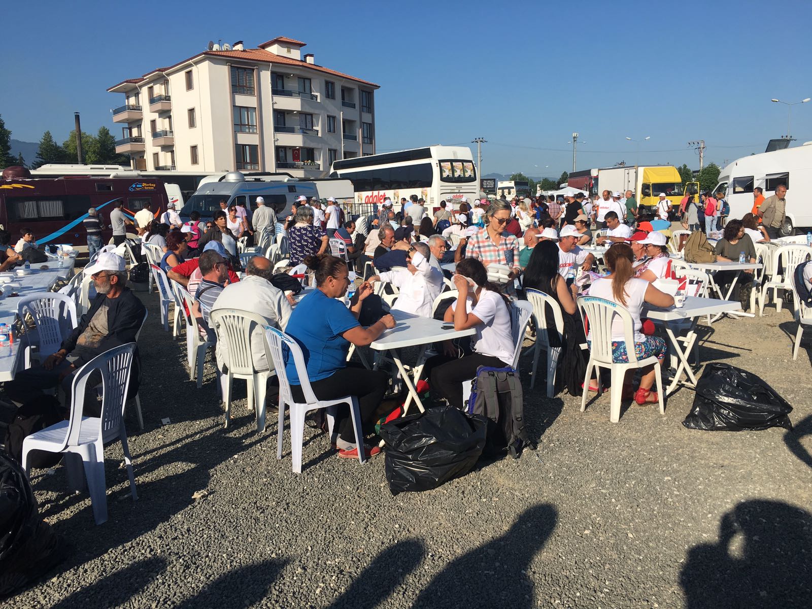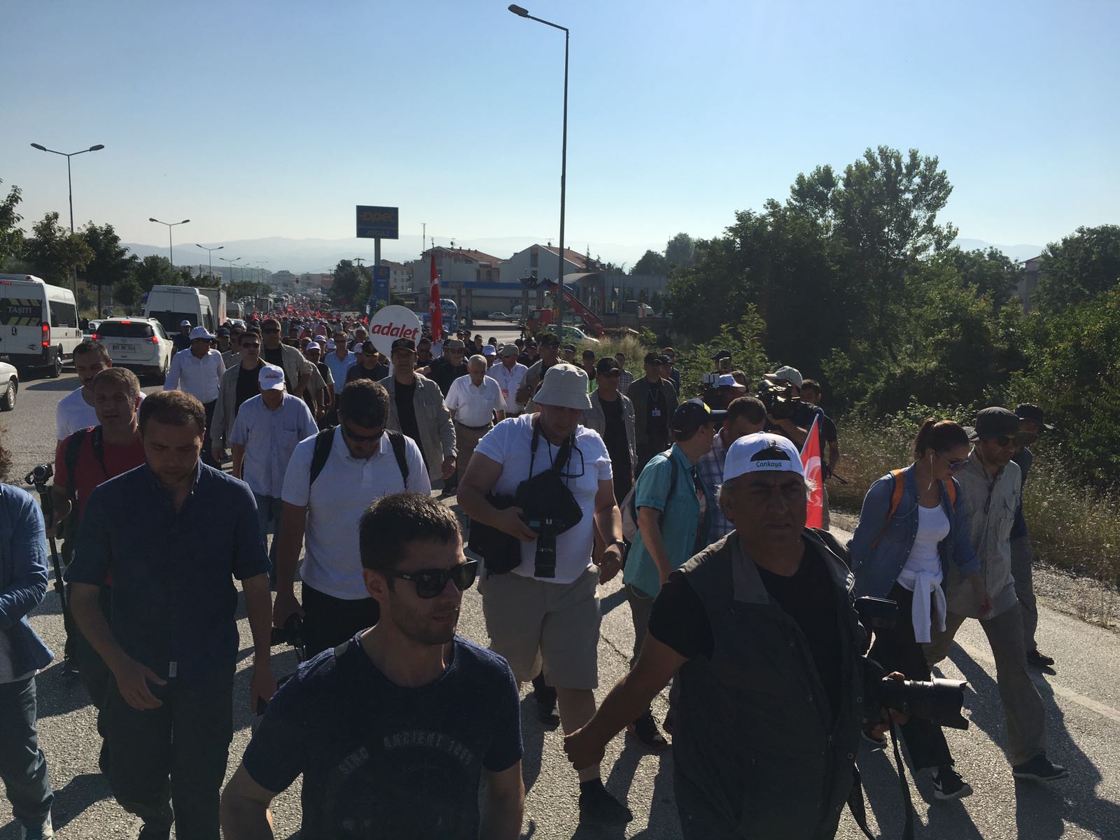 15:50 – Yürüyüş, yeniden başladı. Hava sıcaklığının 31 derece olması nedeniyle hasta ve yaşlı katılımcıların otobüse binmeleri ya da eve dönmeleri çağrısında bulunuldu. Bayram tatili nedeniyle çok sayıda kişinin desteğe geldiği yürüyüşe, katılımın, önceki günlerden daha az olduğu görüldü.