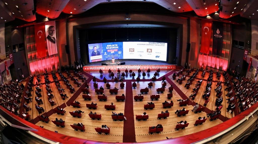 23 Haziran 2019’da tekrarlanan İstanbul seçiminin ardından ikinci kez İBB Başkanı seçilen Ekrem İmamoğlu, göreve gelişinin birinci yıldönümünde Haliç Kongre Merkezi’nde değerlendirme toplantısı düzenleyerek İstanbullulara hesap verdi.