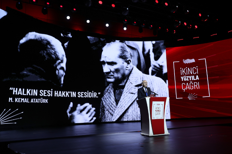 CHP lideri Kemal Kılıçdaroğlu, dün İstanbul’da yeni vizyon belgesini açıkladı. Etkinlikte, CHP’nin “şampiyonlar ligi” olarak tanımlanan “İkinci Yüzyıla Çağrı” ekibi tanıtıldı. Kürsüye “İktidar” sloganları arasında çıkan Kılıçdaroğlu, “Emin olun iktidara geliyoruz” dedi. “Siyaset üstü güçbirliği” vurgusu yapan Kılıçdaroğlu şu mesajları verdi: “Mesele Mustafa Kemal Atatürk’ün o büyük hayaline sahip çıkmaktır. Halkın sesi Hakk’ın sesidir. Bu ülke küllerinden yeniden doğacak. Ayağa kalk Türkiye!”