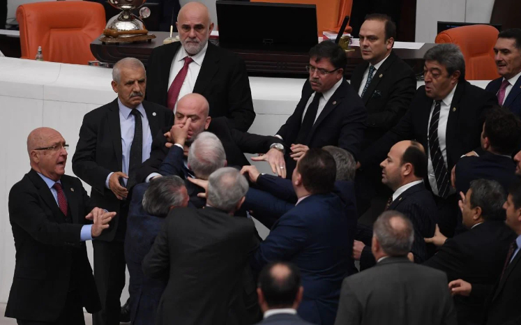 Meclis bütçe görüşmelerinde gergin anlara sahne oldu. AKP’li ve İYİ Partili vekiller arasında arbede çıktı. AKP Bursa Milletvekili Zafer Işık’ın, İYİ Parti Trabzon Milletvekili Hüseyin Örs’e yumruk atması sonucu kafasında açılma meydana geldi. İYİ Parti Isparta Milletvekili Aylin Cesur yaptığı açıklamada, Örs’ün elektroşok ile hayata döndürüldüğünü söyledi. Yoğun bakım servisinde tedaviye alınan Örs’ün durumu ciddiyetini koruyor.