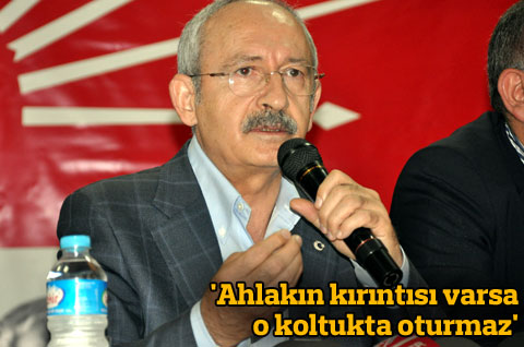 CHP Genel Başkanı Kemal Kılıçdaroğlu, Deniz Feneri soruşturmasında köstebek olduğunu iddia ettiği Beşir Atalay’ı işaret ederek ‘Ahlak kırıntısı varsa o koltukta oturmaması lazım’ dedi. Kılıçdaroğlu, Karaman ziyareti kapsamında ilk olarak CHP İl Başkanlığını ziyaret ederek, partililerle görüştü. Kılıçdaroğlu, daha sonra İl Başkanlığından yürüyerek, partililere hitap edeceği Yunus Emre Konferans Salonu’na geldi.