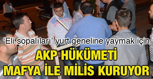 AKP’nin, Haziran Ayaklanması’nda ortaya çıkan ‘eli sopalıları’ yurt geneline yaymak için çalışma yaptığı ortaya çıktı. Amaçkendisine yönelik tepkileri önlemek. AKP’nin iktidarını sürdürmek için tehlikeli bir oyun içinde olduğu bildirildi. AKP’nin mafya ile birlikte sokak gücü oluşturmak için harekete geçtiği öğrenildi. Aydınlık’ın edindiği bilgilere göre AKP bir yandan “İç Güvenlik Paketi” ile polise geniş yetkiler veren yasayı Meclis’ten geçirirken, bir yandan da halk protestolarını önlemek için yeni bir hamle başlattı. Haziran Ayaklanması sırasında Taksim’de ortaya çıkan “eli sopalı milisler”i yurt sathına yaymak için harekete geçti. Bunun için mafya ile işbirliğine girdi.