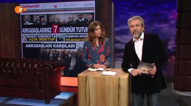 Cumhuriyet gazetesi yazarı Can Dündar, Almanya Devlet Televizyonu’nun ikinci kanalı olan ZDF’de ülkenin en eski siyaset programı olan Aspekte’yi Almanyalı meslektaşı Katty Salie ie birlikte sundu. Programda, Türkiye’deki gazeteciler, sanatçılar, akademisyenler, aydınlar ve sendikacılar başta olmak üzere hükümeti eleştiren kesimlere uygulanan baskı mercek altına alındı. Programda, Cumhuriyet gazetesi yazar ve yöneticileri başta olmak üzere, tüm tutuklu gazeteciler ve aydınlarla dayanışma için “bir dakika sessiz dayanışma” mesajı gönderildi.