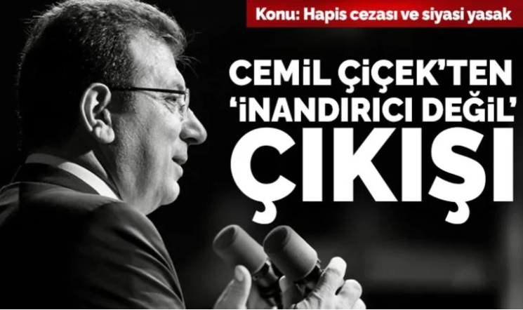 Cumhurbaşkanlığı Yüksek Danışma Kurulu üyesi Cemil Çiçek, İBB Başkanı Ekrem İmamoğlu’na YSK üyelerine hakaret iddiasıyla verilen 2 yıl 7 ay 15 gün hapis cezası ve siyasi yasak kararını değerlendirdi. Çiçek, “Bundan üç küsur sene evvel söylenmiş olan tek cümlelik bir hakaret iddiasını mahkemede bu kadar uzun zaman geçtikten sonra ve üstelik bu kadar kritik bir eşikte karara bağlarsanız, verdiğiniz kararın hukukiliği de isabeti de inandırıcı olmaz” dedi.