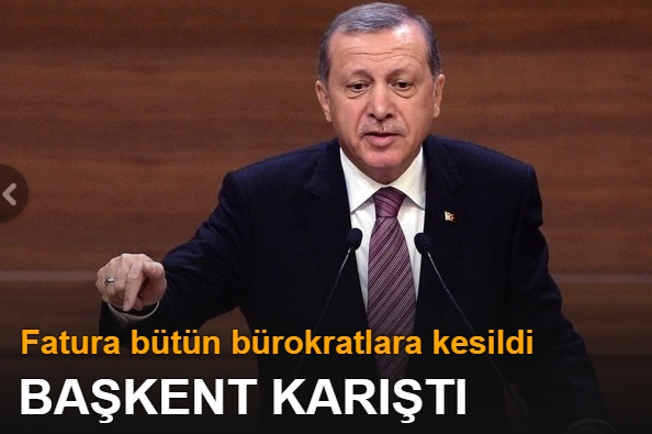 Cumhurbaşkanı Erdoğan, 7 Haziran’dan sonra artan terörün sorumluluğunu bürokratlara yükledi. Çatışmaların başlamasını şahsına ve hükümete fatura edenler olduğunu belirten Erdoğan, “Kamu görevlilerinin gelişmeleri eksik veya yanlış değerlendirmesinin, bu konuda zafiyete yol açtığı anlaşılıyor” dedi. Cumhurbaşkanı Erdoğan, çözüm sürecindeki zafiyet sebebiyle terör örgütünün güçlenmesini ve 7 Haziran seçiminden sonra artan terörün faturasını kamu görevlilerine kesti. Cumhurbaşkanlığı Sarayı’nda 11. kez ağırladığı muhtarlara konuşan Erdoğan, “Maalesef, demokrasi ve özgürlükler art niyetlilerin elinde istismara açık hale dönüşüyor. Bu süreçte terör örgütünün kötü niyetlerini hayata geçirmek için istismar ettiğini gördük. Kamu görevlilerinin gelişmeleri eksik veya yanlış değerlendirmesinin, bu konuda zafiyete yol açtığı anlaşılıyor.” ifadelerini kullandı.
