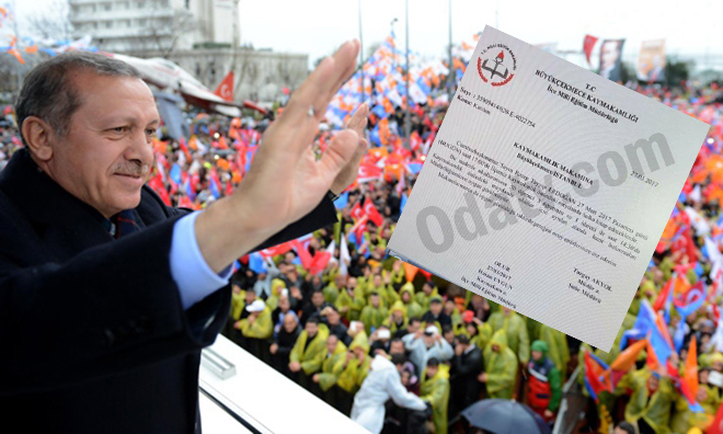 Odatv’nin haberine göre, Tayyip Erdoğan’ın 27 Mart Pazartesi günü Büyükçekmece’de gerçekleştirdiği mitinge İlçe Milli Eğitim Müdürlüğü’nün talimatıyla okullardan öğrenci ve öğretmenlerin götürüldüğü İlçe Milli Eğitim Müdürlüğü’nün Kaymakamlık’a gönderdiği bir resmi yazıyla ortaya çıktı.