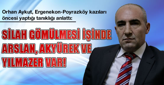 İhsan Arslan’ın AKP Milletvekili olduğu dönem en yakınında bulunan isimlerden Orhan Aykut, Ergenekon-Poyrazköy kazılarında bulunduğu iddia edilen silahları anlattı. Aykut, ‘Mühimmatlar, İhsan Arslan’ın talimatıyla gömüldü’ dedi. Eski AKP Milletvekili İhsan Arslan’la, yine eski vekil Abdullah Veli Seyda aracılığıyla yakınlık kurduktan sonra Arslan ekibine katılan Orhan Aykut, Aydınlık’a özel açıklamalarda bulundu. Aykut, dünkü Aydınlık’ta, Balyoz CD’lerinin nasıl üretildiğini anlatmıştı.